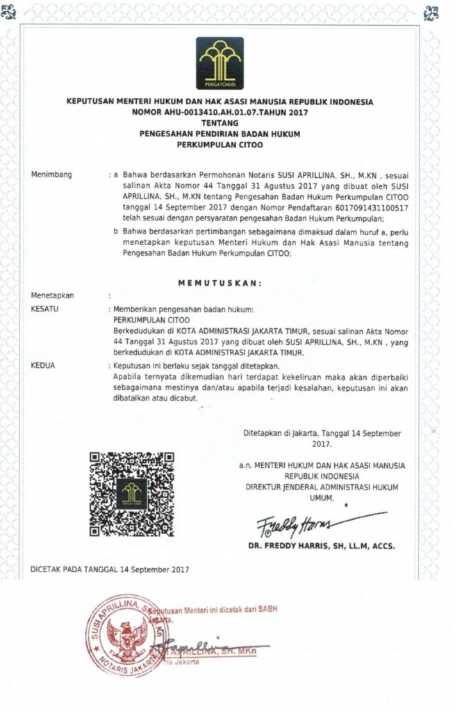 • Legalitas Lembaga
